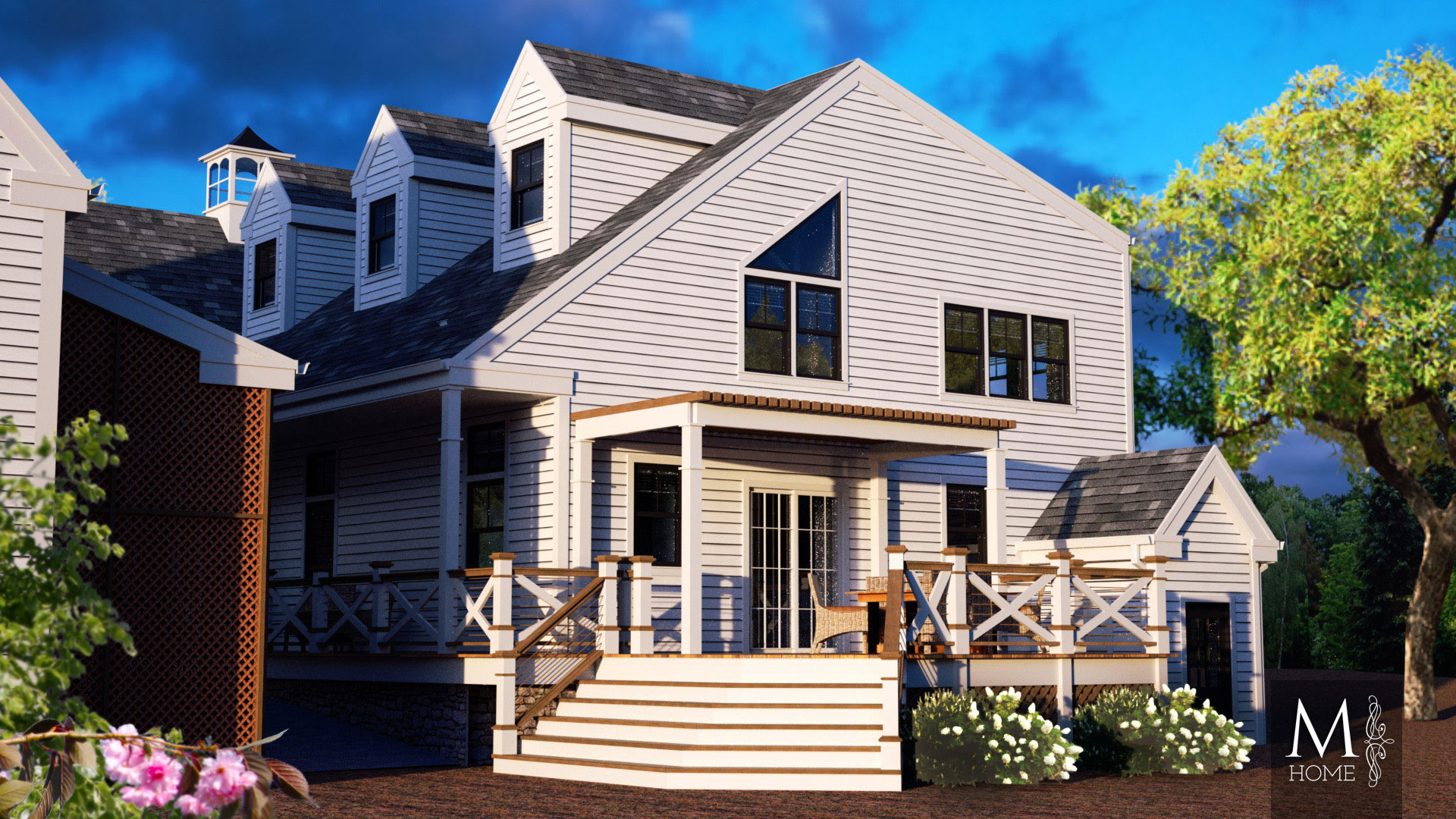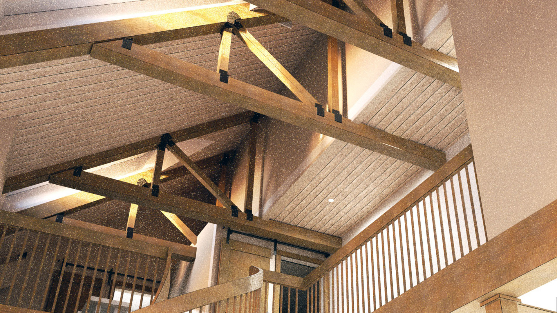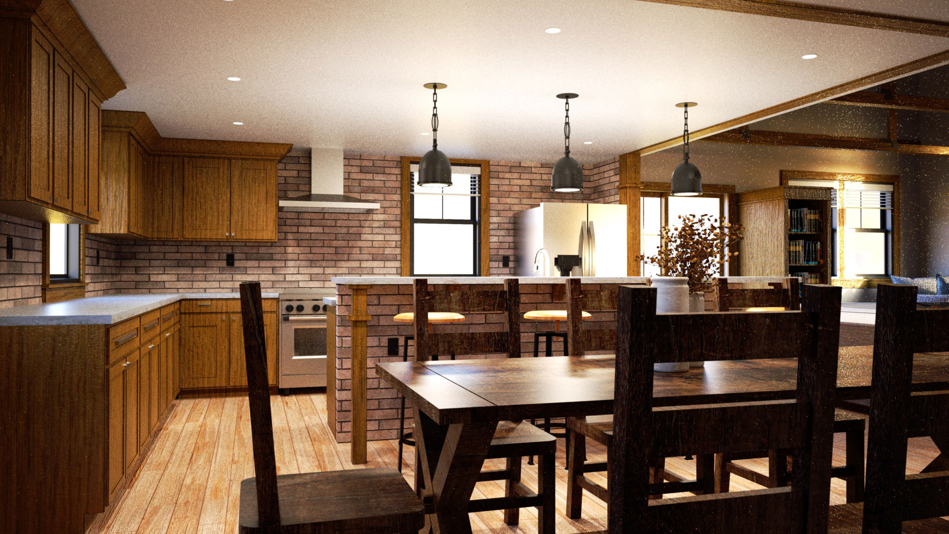 Thought and attention was paid to how they wanted to live in the coming years. Maintaining a scenic vista complete with river, but also fitting into the scenery. Details were addressed so that Christmas lights could be hung, a hearth fireplace could be enjoyed, and built-in casework was designed to create that farmhouse feel.