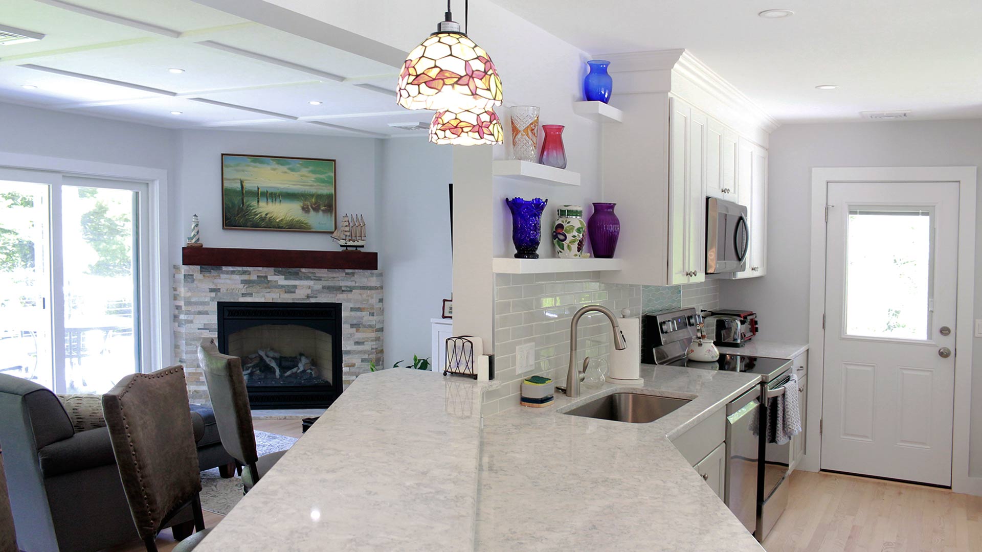 When Ben + Donna decided to move into the house they grew up in, they had a tall order. The house was dated in the mid century modern style, and was in drastic need to reflect their ability to entertain and enjoy their life together. Through judicious use of engineering, we were able to take down most of the load bearing walls, and replace the style with that of something more timeless and classic. The result: a New England Colonial style feel with an open concept, perfect for entertaining guests or spending the night in.