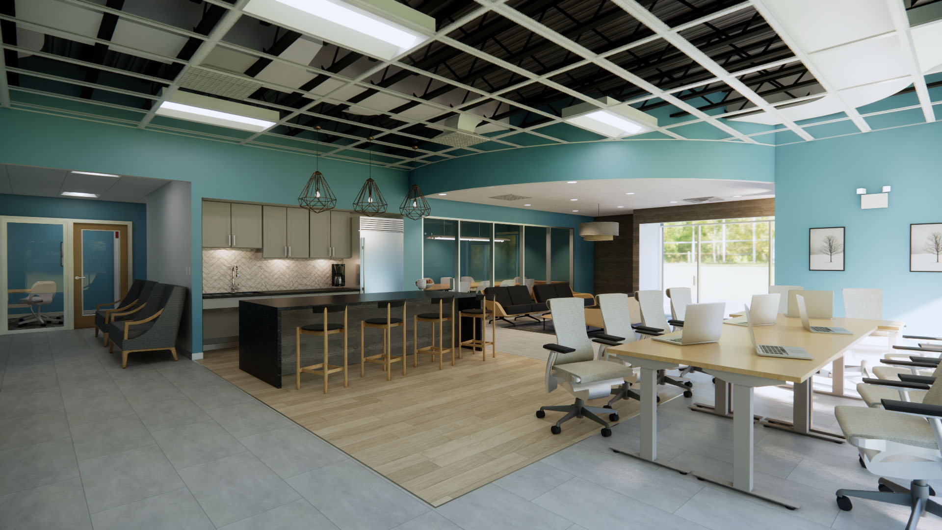 To help ensure that the space was both modern and welcoming, we created a series of spaces for different types of activity. From a quiet room to a bustling communal work area, to a relaxed lounge and kitchen, each space is centered around the different ways in which people can work and learn. Assistive technology was implemented to create an experience that was equitable and exciting. Back of house administration was created to be warm and inviting to all.